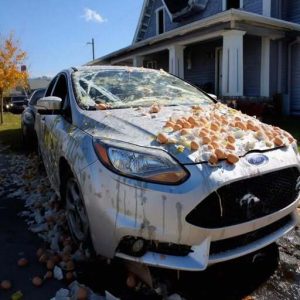 On the morning before Halloween, single mother Emily discovered her car was vandalized—eggs and toilet paper covering it—and her young son Noah innocently asked if the car…