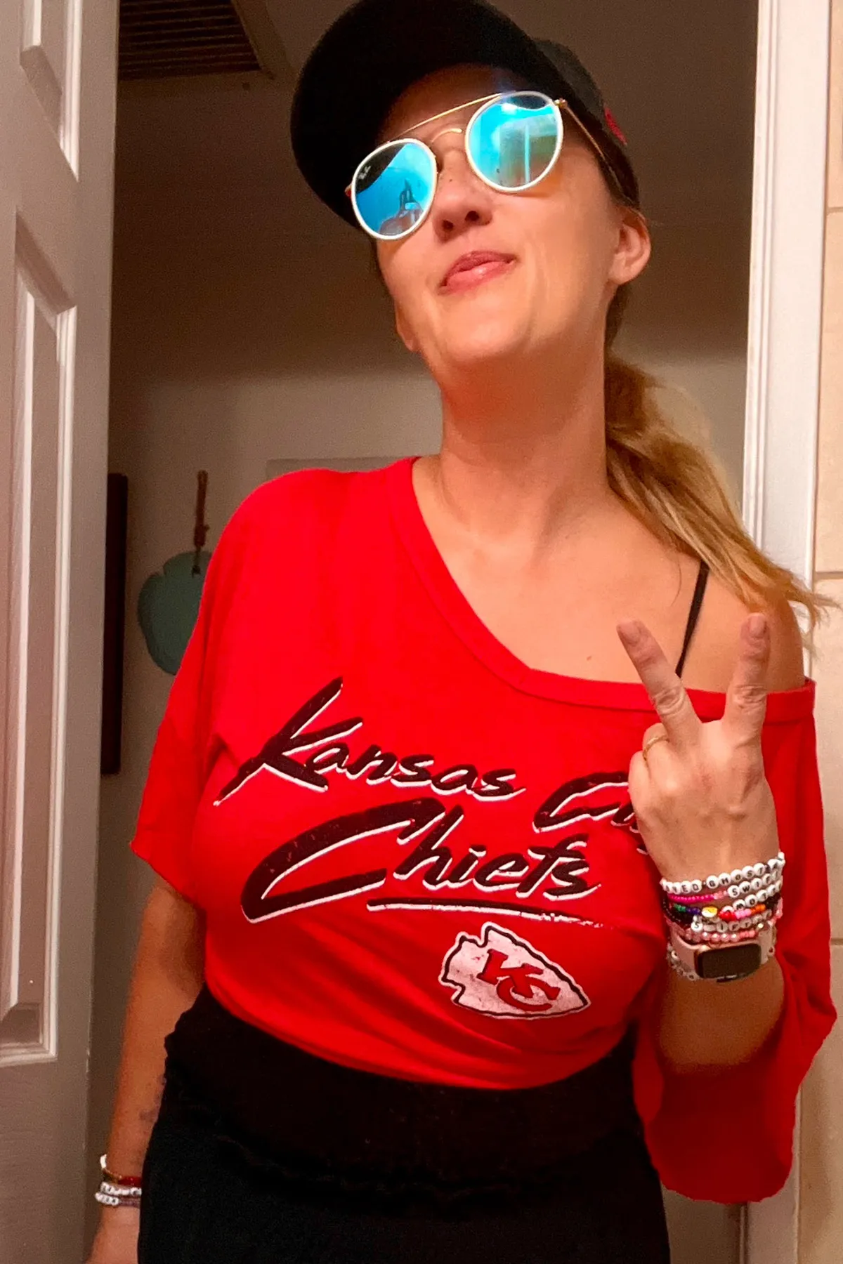 By Halloween, Fleming had embraced the full spirit of the season — and of her favorite artist. “I dressed up in my sparkly Chiefs attire and my sparkly boots, made bag after bag of friendship bracelets, and went out to the neighborhood to hand them to the kids,” she says. “You know, everyone loves Taylor Swift.”