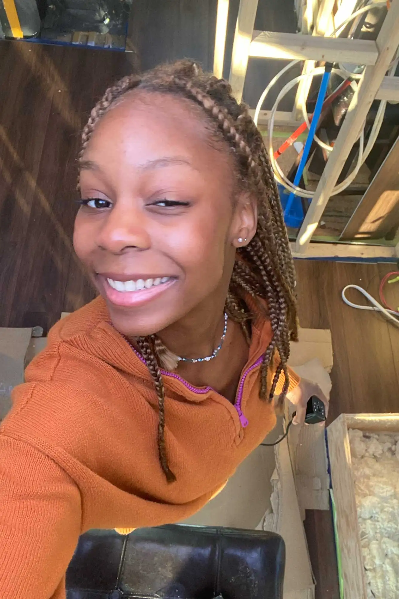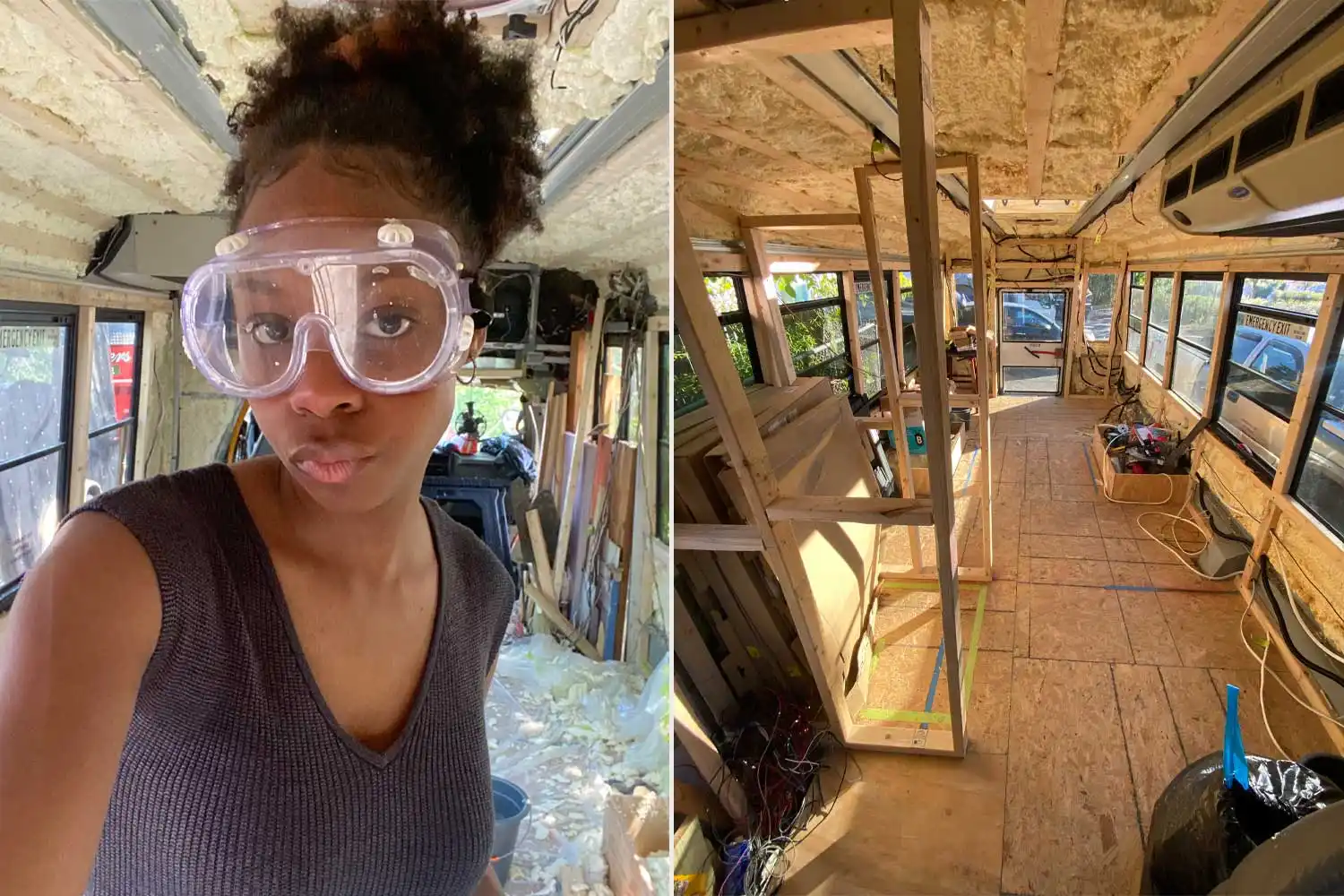 Danielle renovating a school bus into a home.