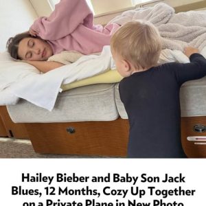 Hailey Bieber Snuggles with Son Jack Blues, 12 Months, on a Private Plane