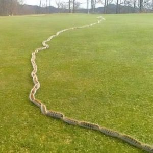 I saw something strange in the grass and thought it was just a rope – but when I looked closer, I screamed in horror!
